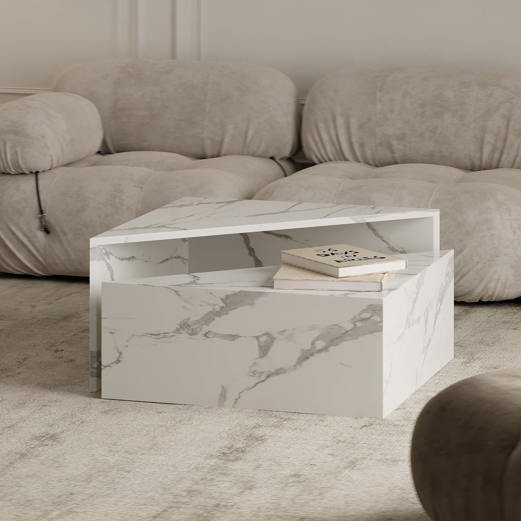 Dynamic and contemporary, The Bliss Coffee Table features a two-tiered design that creates a sense of movement and depth. The asymmetrical surfaces, with one tier set higher than the other, highlight the natural veining and elegance of the stone. Choose between a honed or polished finish, complemented by either a straight edge for modern definition or a half bullnose edge for subtle softness. Perfect for adding a sculptural touch to any interior.