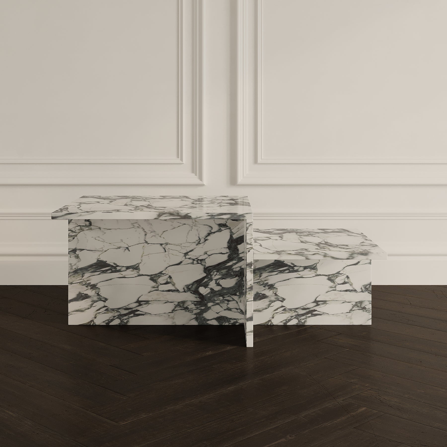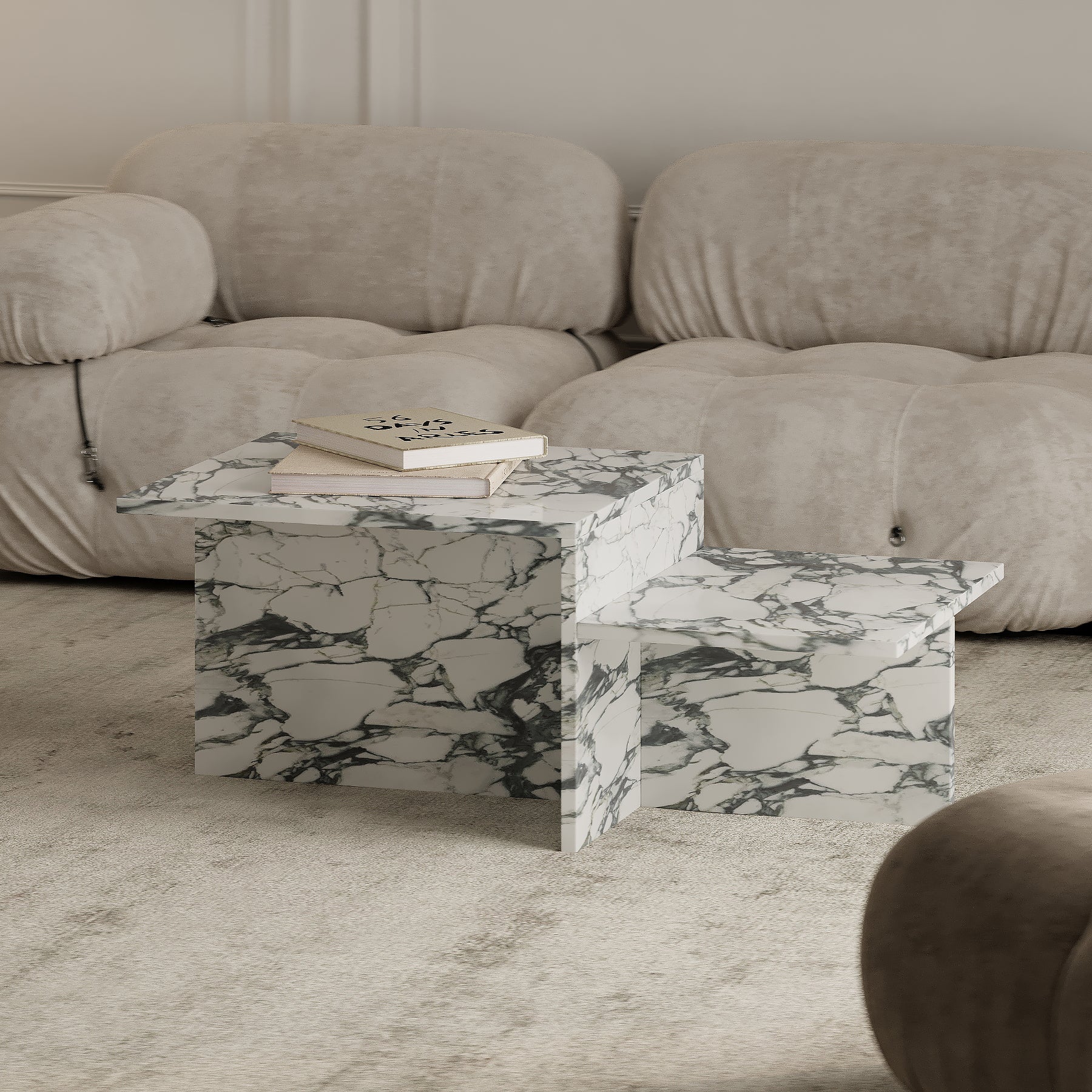 A masterpiece of geometric design, The Rome Coffee Table features a unique layered structure. Two rectangular platforms are arranged at differing heights, creating a stepped, sculptural effect. The vertical supports intersect at the centre in a cross-like formation, offering both stability and striking visual appeal. Available in a honed or polished finish, with either a straight or half bullnose edge, this table adds contemporary artistry to any living space.