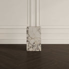 Sleek and sculptural, The Savoy Side Table makes a bold statement with its monolith-like silhouette and slender proportions. The clean, uninterrupted lines highlight the natural beauty of the stone, from delicate veining to organic tonal variations. Available in a honed or polished finish, with the option of a straight edge for a contemporary aesthetic or a half bullnose edge for softer appeal. Ideal for smaller spaces or as a refined accent beside chairs or sofas.