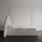 The Solara Bed is a sophisticated statement piece designed to bring both serenity and style to your bedroom. Its gracefully curved headboard creates a sense of fluidity, making it the perfect blend of modern minimalism and organic form.